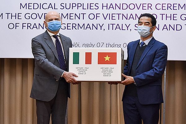La capacità di far fronte all’emergenza sia dal punto di vista sia politico che scientifico ha permesso al Vietnam di venire in soccorso nei confronti dei Paesi più colpiti. Tra quelli che hanno ricevuto assistenza a vario titolo dal governo di Hà Nội, troviamo Italia, Francia, Germania, Regno Unito, Spagna, Svezia, Stati Uniti, Cambogia, Laos, Myanmar e Indonesia. Proprio in queste ore, l’Italia ha ricevuto il secondo carico di aiuti dal Vietnam con un volo che ha trasportato anche cinquanta cittadini italiani che avevano chiesto il rimpatrio.