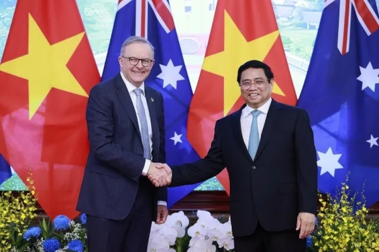 Dando il benvenuto al suo omologo australiano, il primo ministro Chính ha affermato che la visita di Albanese, che si svolge in occasione del 50° anniversario delle relazioni diplomatiche tra i due Paesi e a cinque anni dall’istituzione del partenariato strategico, creerà un nuovo slancio per i legami bilaterali, e ha sottolineato che il Vietnam attribuisce sempre importanza e desidera rafforzare l’amicizia e la cooperazione con l’Australia. Dal canto suo, il primo ministro Albanese ha affermato che l’Australia vede il Vietnam come uno dei centri principali per la costruzione della sua strategia sulle relazioni con il sud-est asiatico.