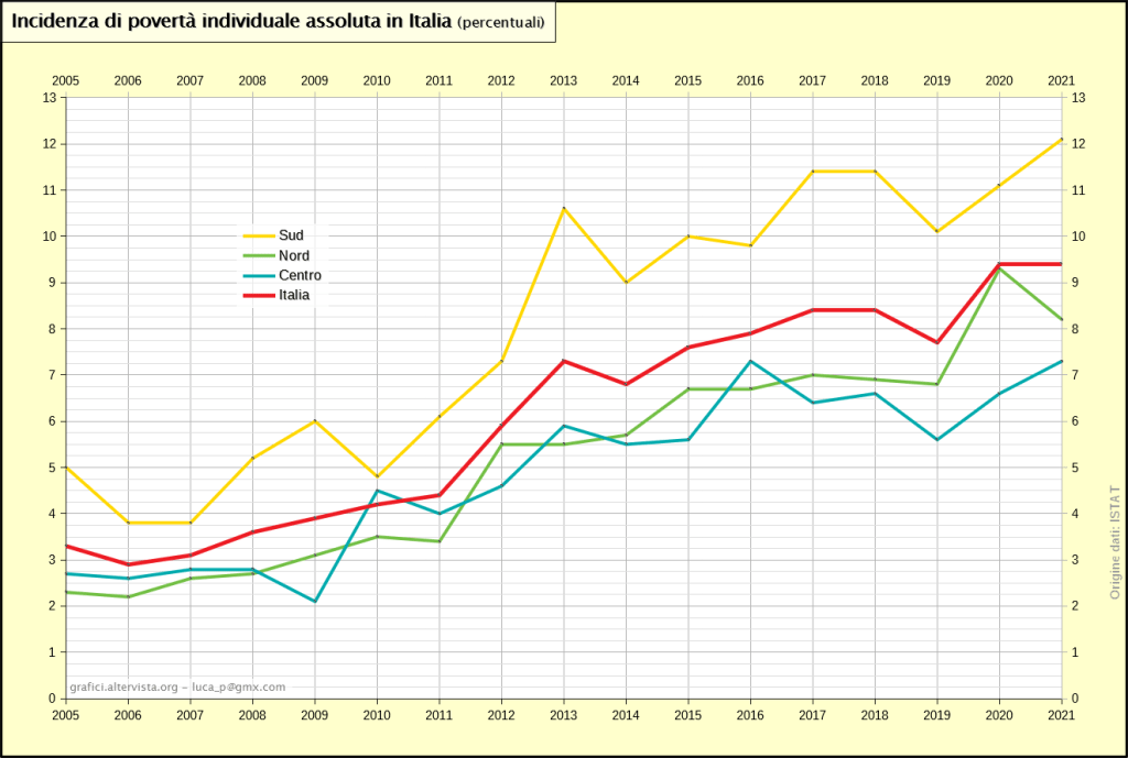 L’Italia ha registrato più di ogni altro paese la caduta del potere di acquisto delle classi meno abbienti e pesano non poco sulle spalle dei lavoratori il massiccio ricorso ai contratti precari, a tempo determinato e part-time, e anche il sistema fiscale, oltre alla scellerata cancellazione del reddito di cittadinanza e alla mancata adozione di un salario minimo adeguabile all’inflazione.