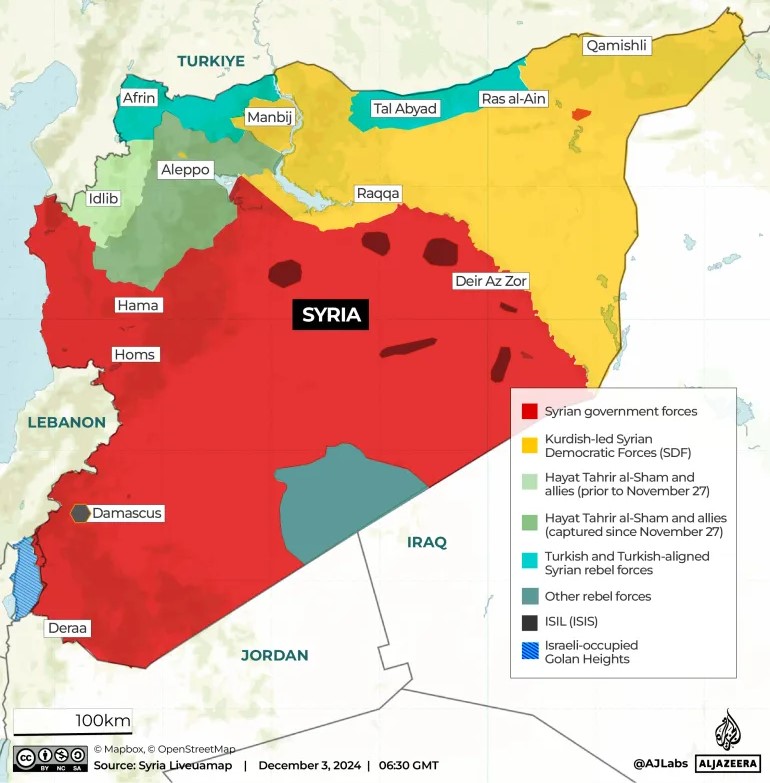 È chiaro che HTS non sarebbe stata in grado di lanciare un’offensiva del genere se non fosse stato per l’attuale situazione internazionale. La Russia è principalmente concentrata sulla conduzione di operazioni militari nell’Ukr. SMO, e l’Iran e il suo “Asse della Resistenza” sono coinvolti in un serio confronto con Israele e gli Stati Uniti, che li sostengono. Di conseguenza, proprio come il nostro gruppo in Siria è molto piccolo, così il gruppo di forze filo-iraniane sotto il comando di consiglieri iraniani è stato notevolmente ridotto negli ultimi anni ed è stato disperso a causa di frequenti attacchi dell’aeronautica militare israeliana.