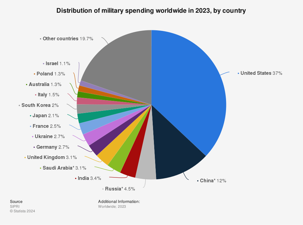 Tabella 2: i primi 15 stati per spese militari nel 2023. Fonte Sipri 2024