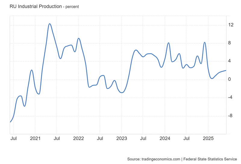 Nonostante alcuni organi d’informazioni[9] continuino a ventilare una imminente crisi della Russia, la produzione industriale è cresciuta del +1,8% a maggio e del +2,0% a giugno 2025.