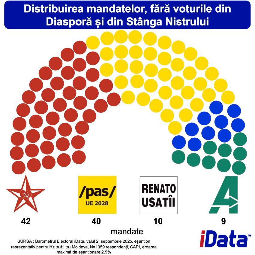 I leader delle preferenze degli elettori includono il Blocco Patriottico Elettorale di PSRM, Inima Moldovei, PCRM e il Futuro della Moldavia. Il 36% degli intervistati è pronto a votare per questo Blocco. E questo dato supera il PAS, che ha ottenuto il sostegno di solo il 34,7%. anche Nostro Partito e Blocco Alternativo potrebbero entrare in parlamento. Così, in totale, i partiti di opposizione avrebbero 61 seggi. Il Blocco Patriottico 42 seggi, il Nostro Partito 10, e Alternativa ne ha 9. Ora il partito di governo PAS riceverebbe solo 40 mandati di deputati del parlamento.