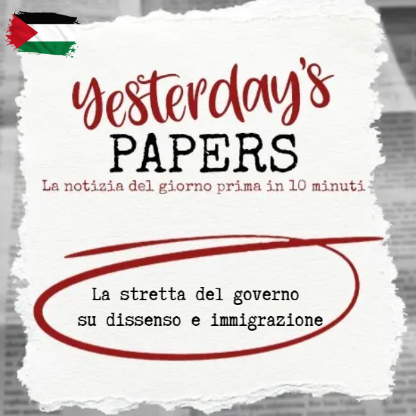 […] Yesterday’s Papers – La nuova stretta del governo su dissenso e immigrazione Yesterday’s Papers – “Emergenza” Democrazia di Carla Filosa Yesterday’s Papers – Servizio militare obbligatorio, il “NO” dei giovani tedeschi […]