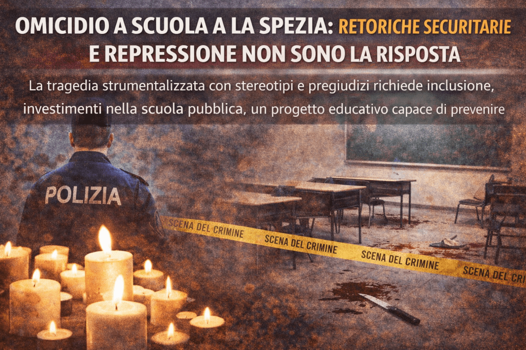 L’omicidio di un giovane a scuola, a La Spezia, viene subito strumentalizzato con stereotipi e retoriche securitarie che assolvono il sistema e alimentano pregiudizi. Ma la risposta non è repressione: servono inclusione, investimenti nella scuola pubblica e un progetto educativo capace di prevenire disagio e violenza.