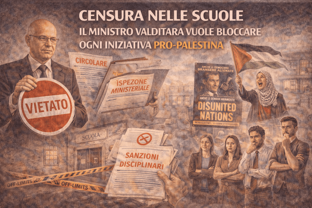 Il ministro dell’Istruzione e del Merito Giuseppe Valditara torna all’attacco per arrestare ogni forma di iniziativa, nelle scuole, a sostegno del popolo palestinese.