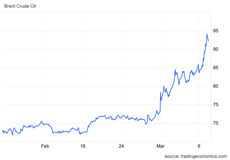 Le prospettive economiche globali ed europee, in particolare, si presentano a decise tinte fosche con i listini del Vecchio continente in sensibile flessione e con il brusco rialzo dei prezzi del petrolio e del gas che presagiscono una ripresa dell’inflazione. Vedremo i primi dati per marzo quando usciranno ma i segnali sembrano abbastanza chiari visto che la Banca Centrale Europea già lunedì 9 ha prospettato un rialzo dei tassi, ad oggi al 2%, entro giugno o luglio e i rendimenti dei titoli di stato dei paesi europei hanno raggiunto i livelli più alti da un anno.